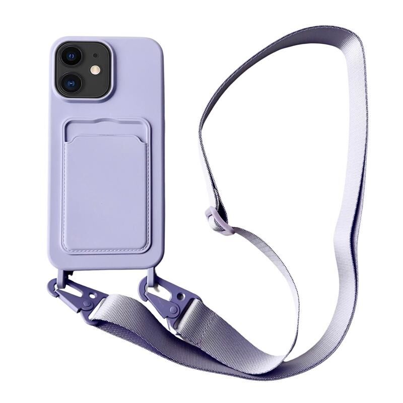 Θήκη για iPhone 12 με θήκη κάρτας, υγρή σιλικόνη με κορδόνι (Μαύρο)