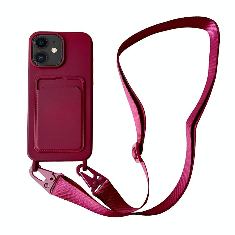 Θήκη για iPhone 12 με θήκη κάρτας, υγρή σιλικόνη με κορδόνι (Μαύρο)