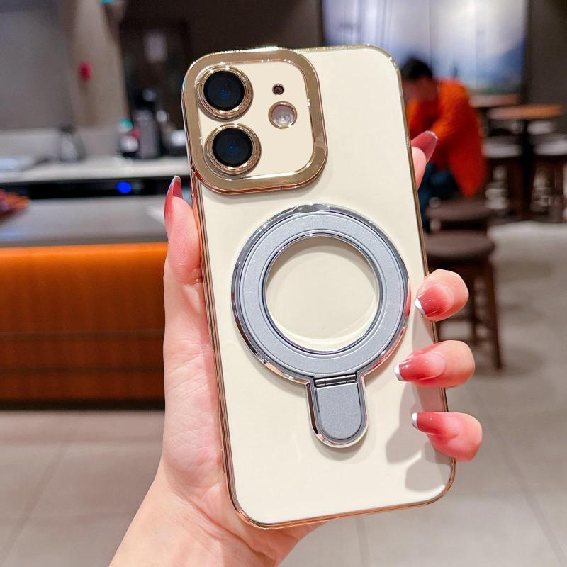 For iPhone 12 Charm Eye Electroplating Metal Holder Phone Case(Silver)