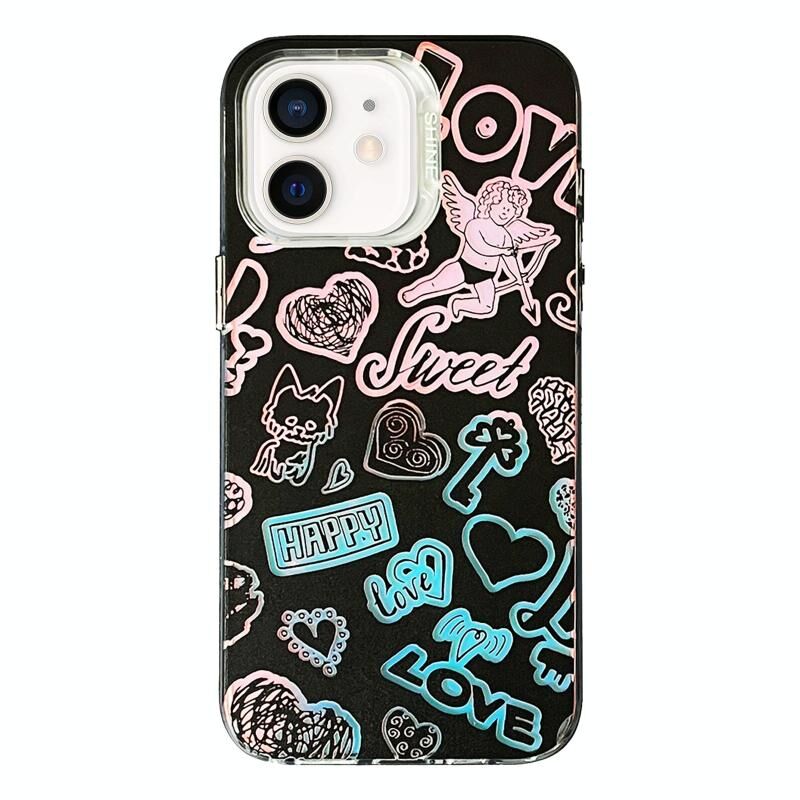 For iPhone 12 Colorful Pattern TPU + PC Phone Case(Graffiti Angel)