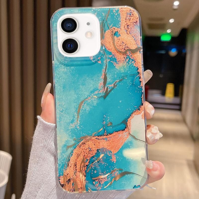 Θήκη τηλεφώνου με γυαλιστερό μαρμάρινο σχέδιο για iPhone 12 (Ροζ Χρυσό)