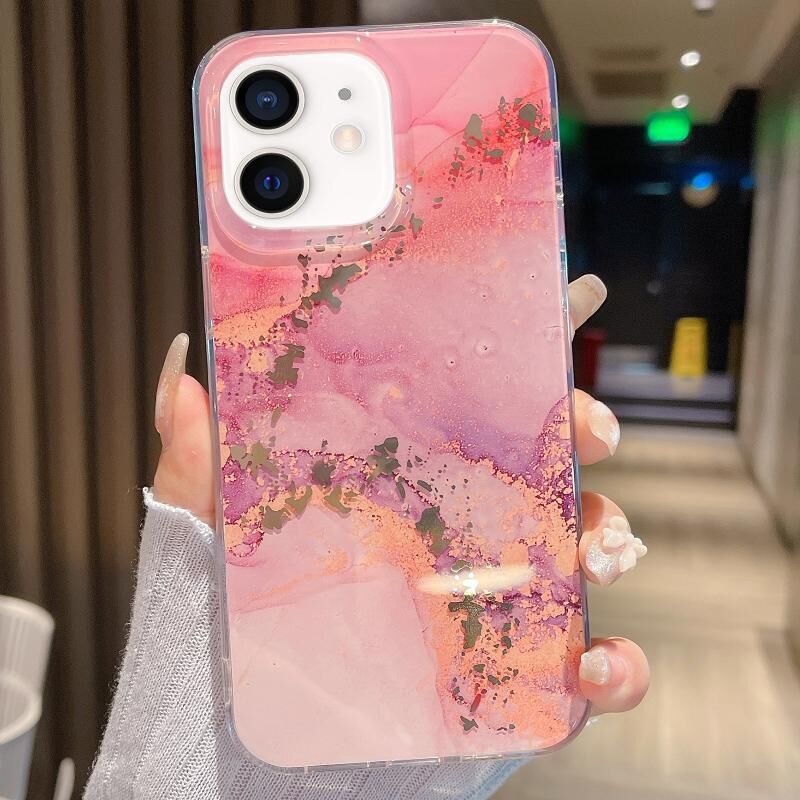 Θήκη τηλεφώνου με γυαλιστερό μαρμάρινο σχέδιο για iPhone 12 (Ροζ Χρυσό)