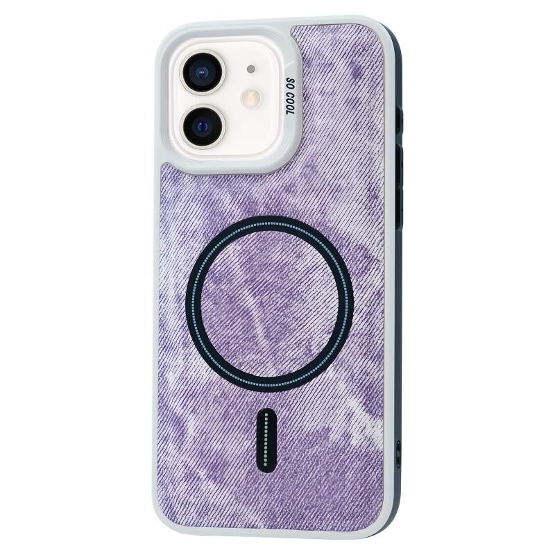 For iPhone 12 Contrast Color Denim MagSafe Magnetic Phone Case(Pink Purple)