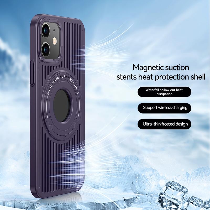 For iPhone 12 Cooling MagSafe Magnetic Ring Holder Phone Case(Purple)