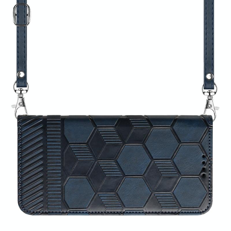 For iPhone 12 Crossbody Football Texture Magnetic PU Phone Case(Dark Blue)
