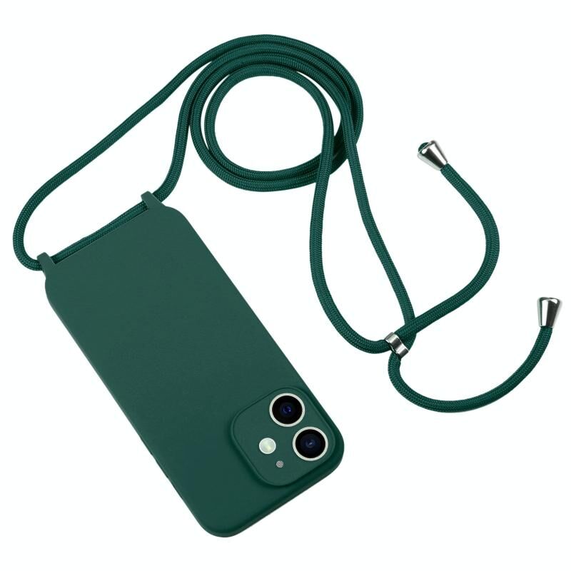 For iPhone 12 Crossbody Lanyard Liquid Silicone Case(Clover Green)