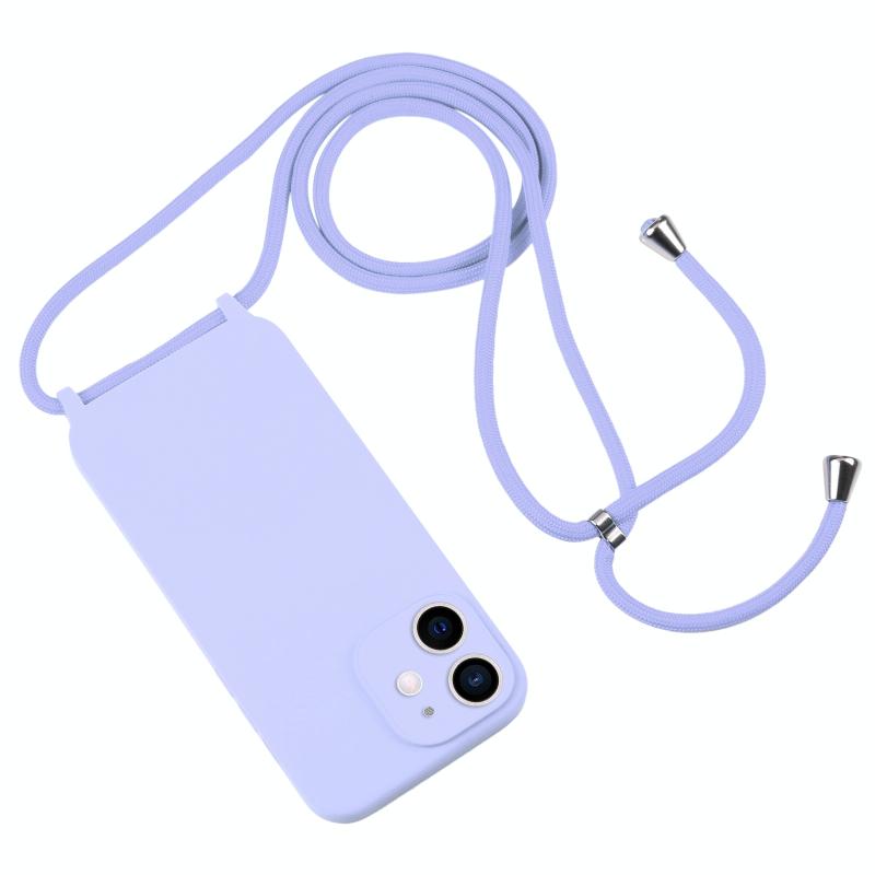 For iPhone 12 Crossbody Lanyard Liquid Silicone Case(Light Purple)