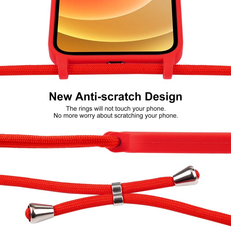 For iPhone 12 Crossbody Lanyard Liquid Silicone Case(Red)