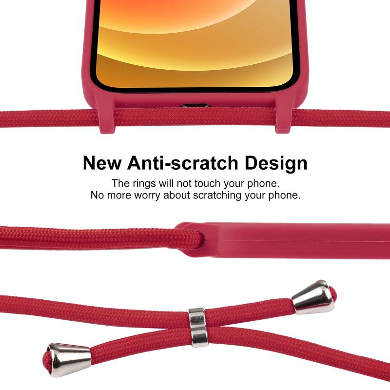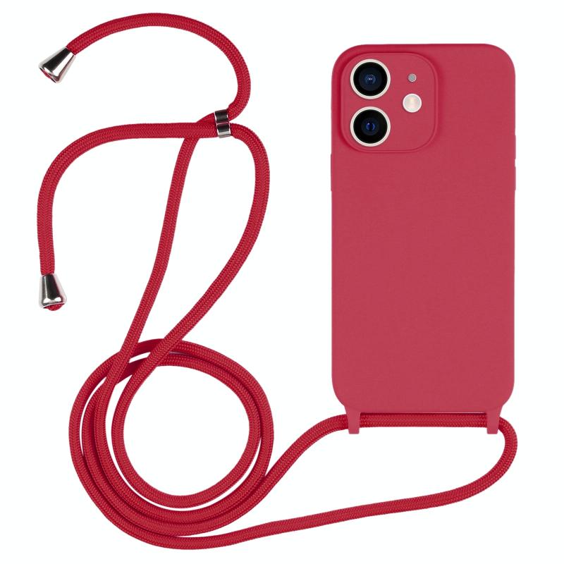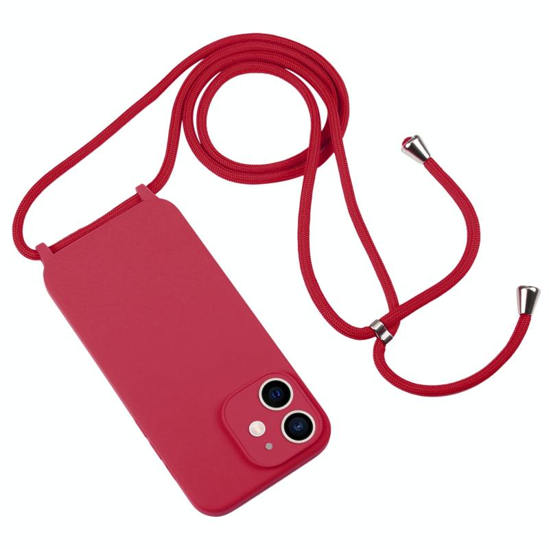 For iPhone 12 Crossbody Lanyard Liquid Silicone Case(Rose Red)