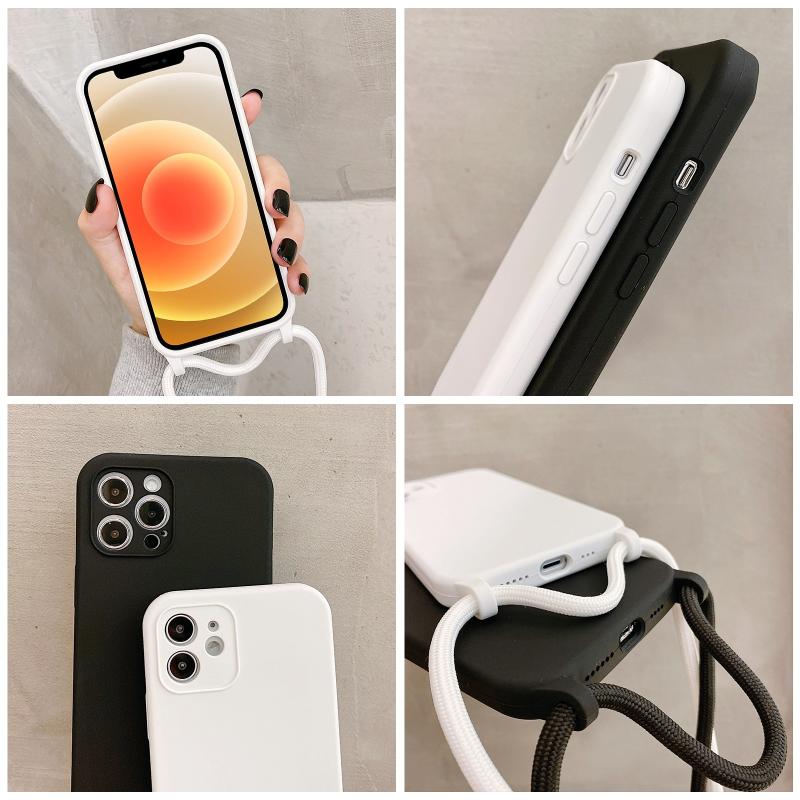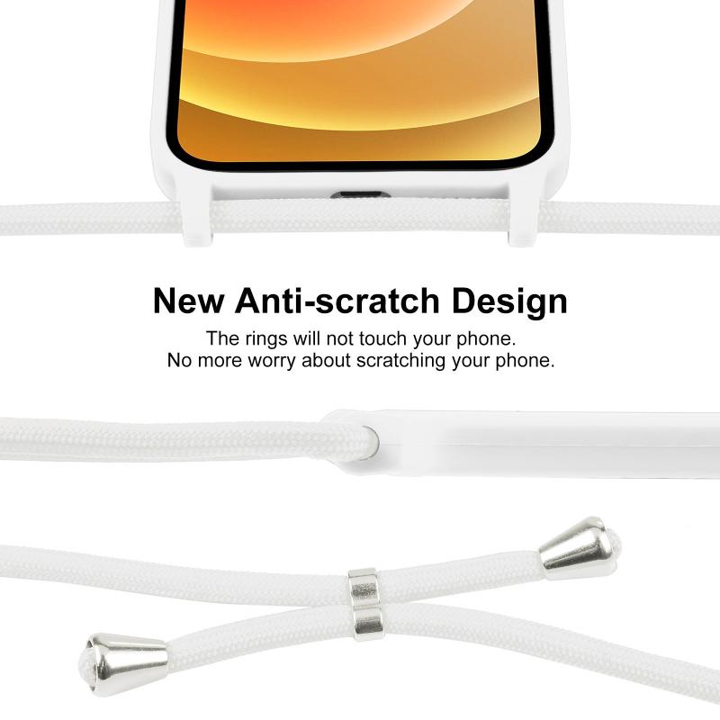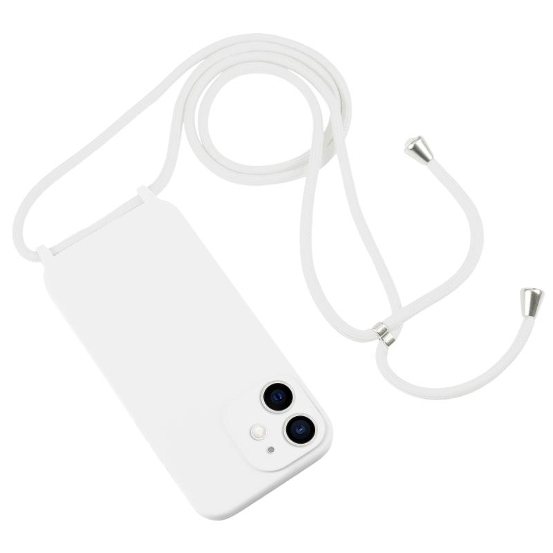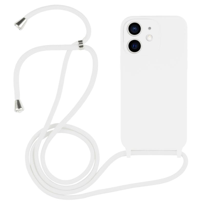 For iPhone 12 Crossbody Lanyard Liquid Silicone Case(White)