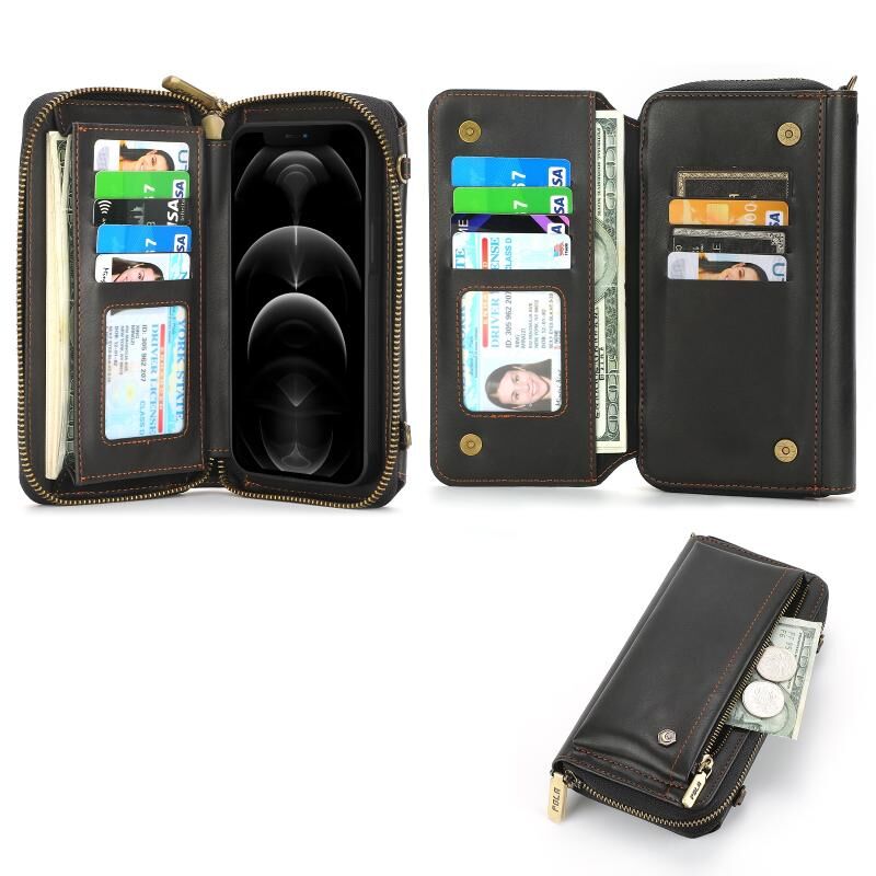 Θήκη τηλεφώνου για iPhone 12, δερμάτινη, πολλαπλών λειτουργιών με φερμουάρ και ιμάντα ώμου (Κόκκινη)