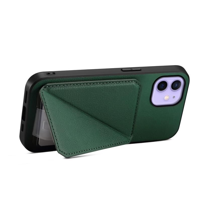 For iPhone 12 D04 Calf Texture Dual Card Slot Holder Phone Case(Green)