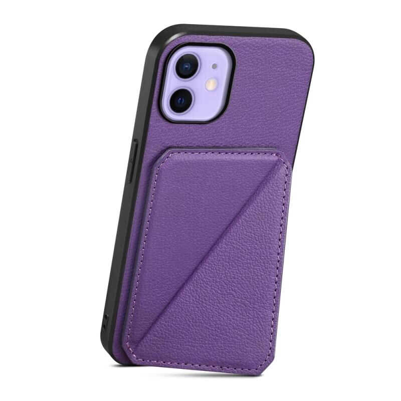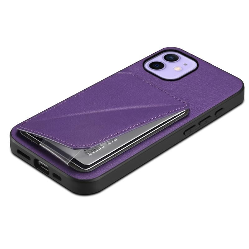 For iPhone 12 D04 Calf Texture Dual Card Slot Holder Phone Case(Purple)