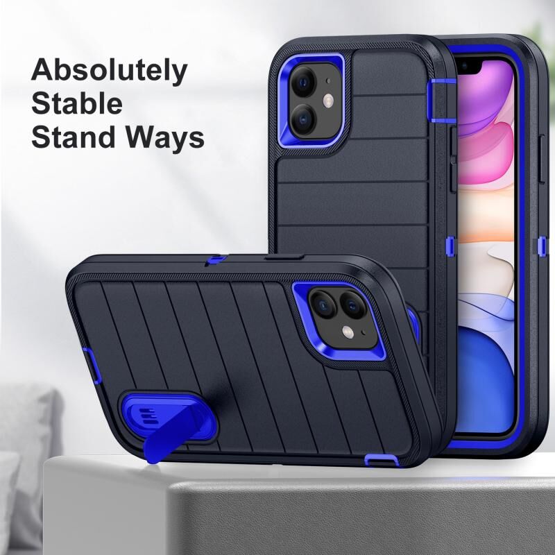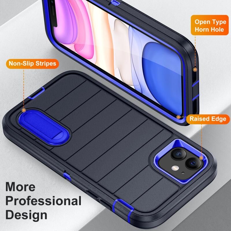 Θήκη για iPhone 12 Defender Gen2, ανθεκτική από πολυανθρακικό + σιλικόνη με βάση στήριξης (Μαύρο)