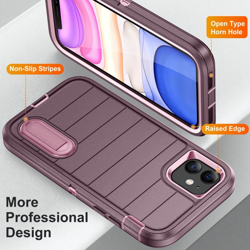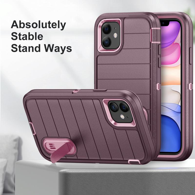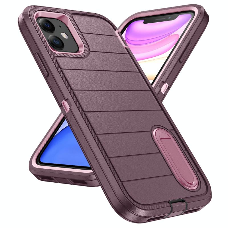 For iPhone 12 Defender Gen2 Rugged PC + Silicone Phone Case with Holder(Purple+Light Pink)