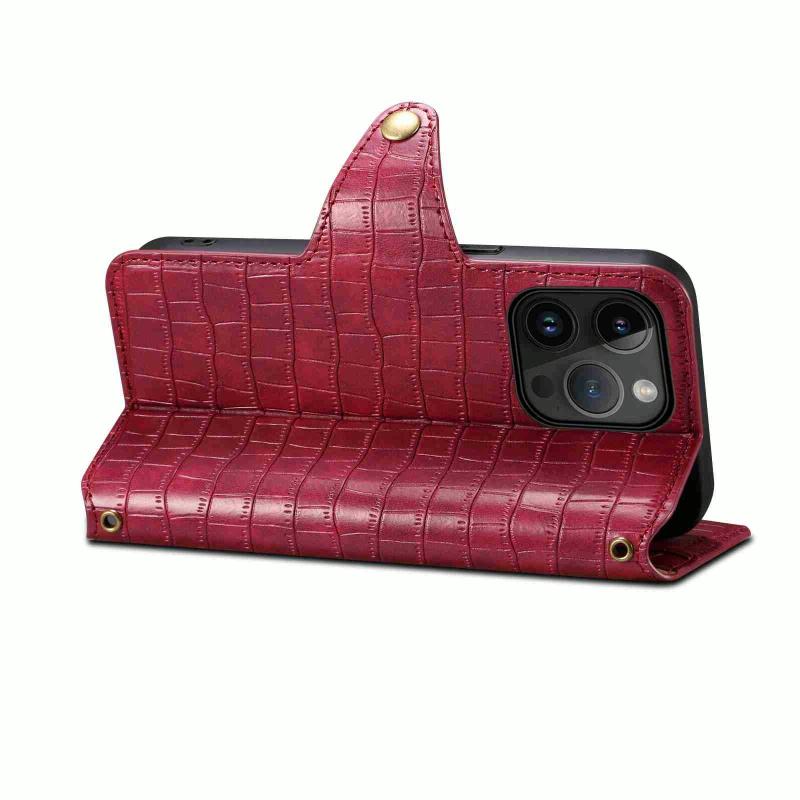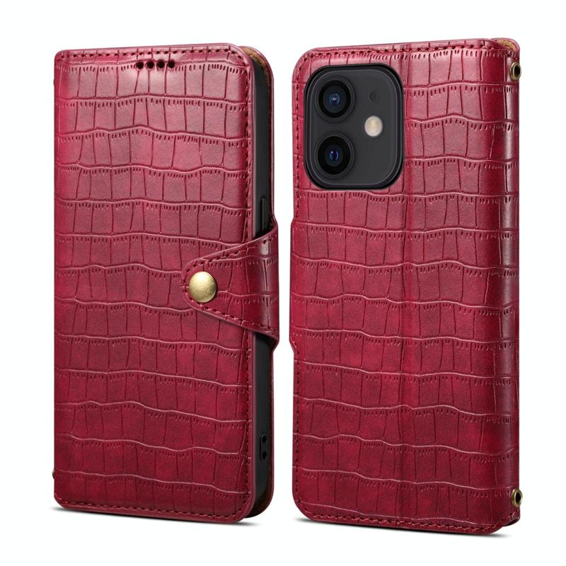 For iPhone 12 Denior Crocodile Texture Oil Edge Leather Phone Case(Rose Red) (Denior)