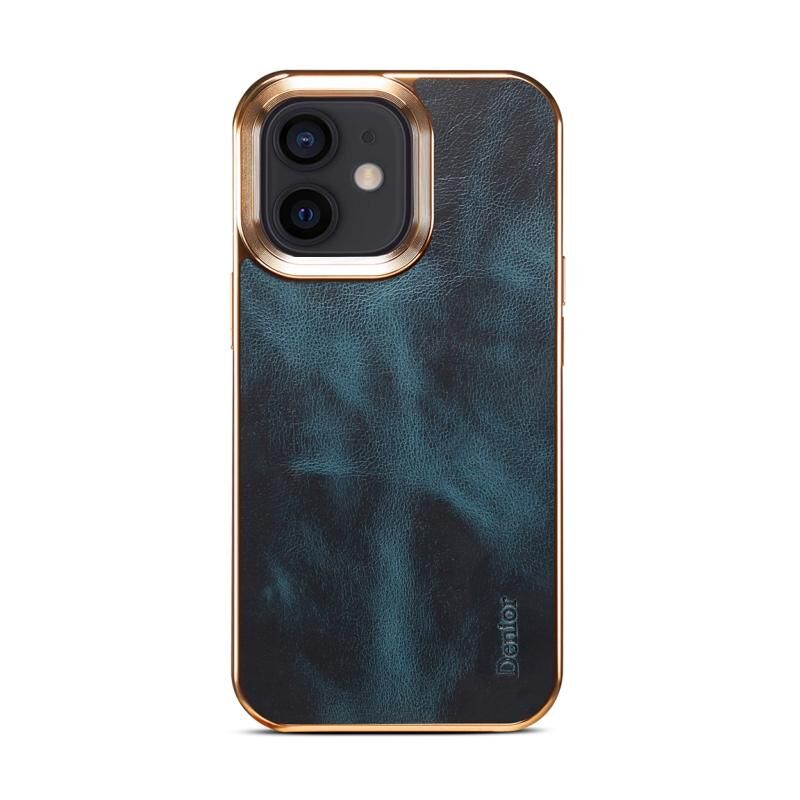 For iPhone 12 Denior Oil Wax Cowhide Plating Phone Case(Blue) (Denior)