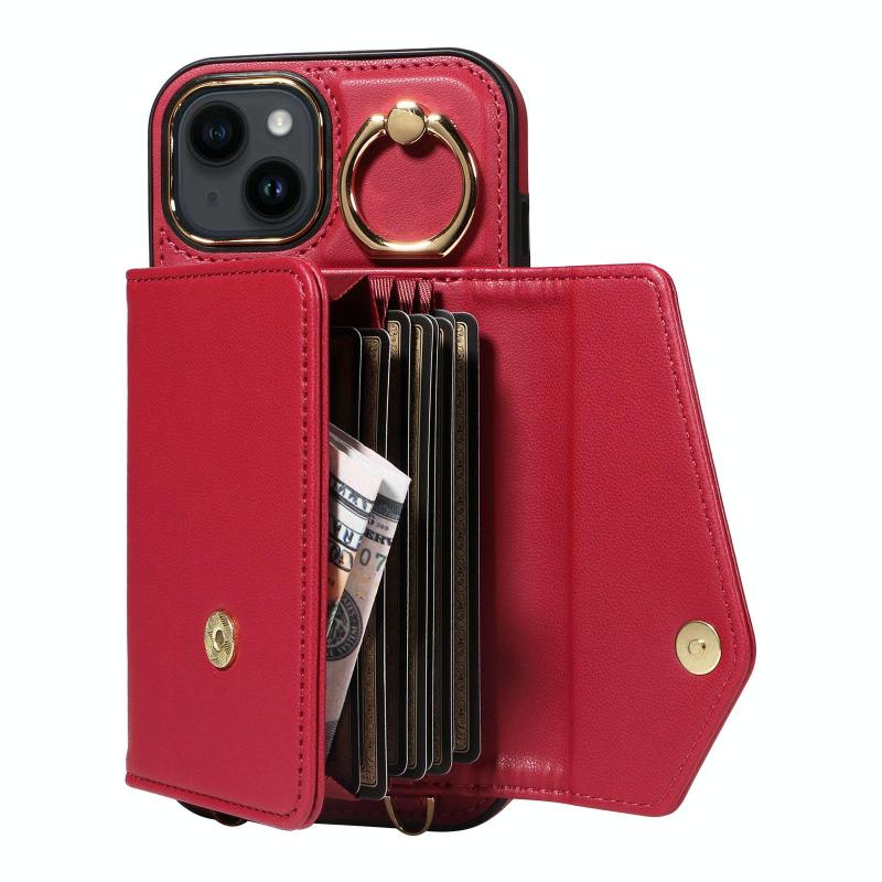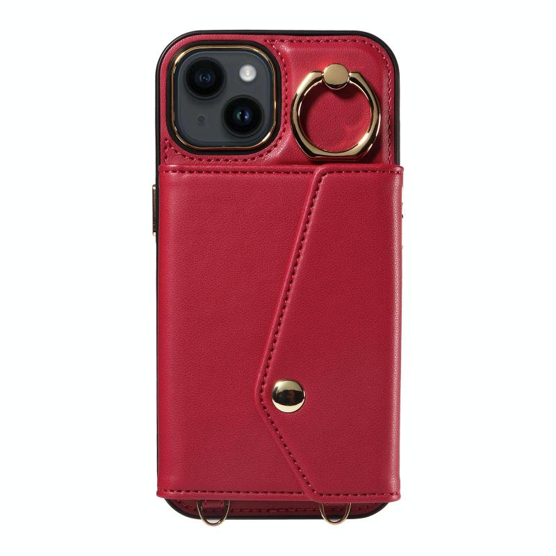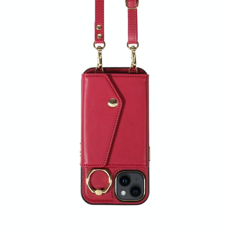 For iPhone 12 Diagonal Crossbody Ring Organ Wallet Leather Back Phone Case(Wine Red)