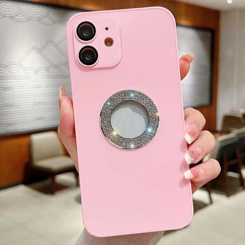 Θήκη τηλεφώνου για iPhone 12, γυαλί με διαμάντι και ματ φινίρισμα, PC (Ροζ)