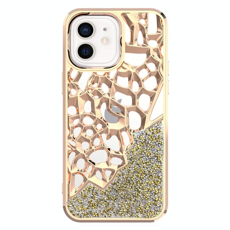 For iPhone 12 Diamond Style Hollow Heat Dissipation Electroplated TPU Phone Case(Gold)