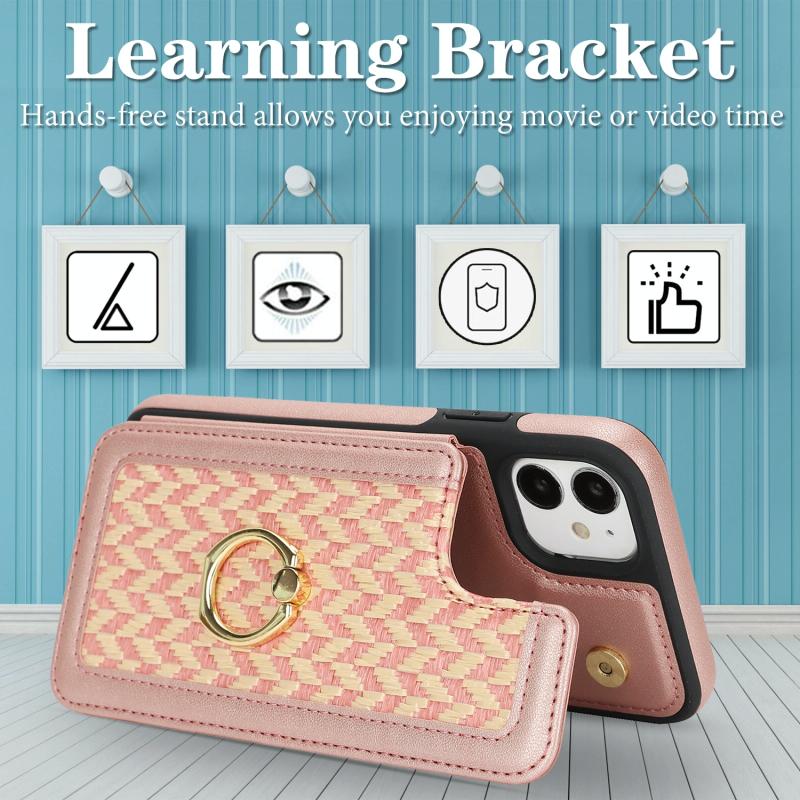 Θήκη iPhone 12 με Διπλή Αγκράφα, Θήκη Κάρτας & Λουρί Ώμου (Ροζ Χρυσό)