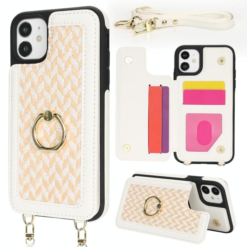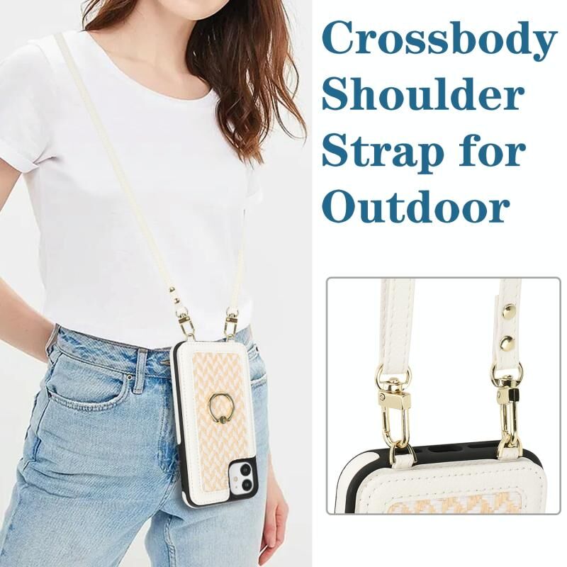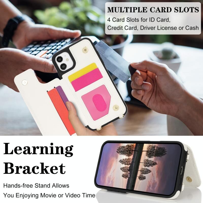 Θήκη τηλεφώνου για iPhone 12 με διπλή θήκη καρτών, πλήρη κάλυψη και λουρί χιαστί (Μαύρο)