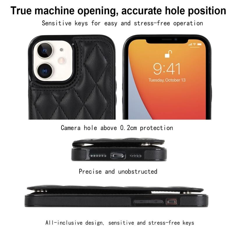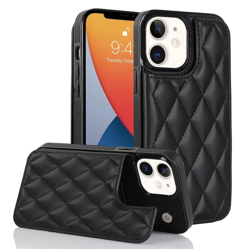 For iPhone 12 Double Buckle Rhombic PU Leather Phone Case(Black)