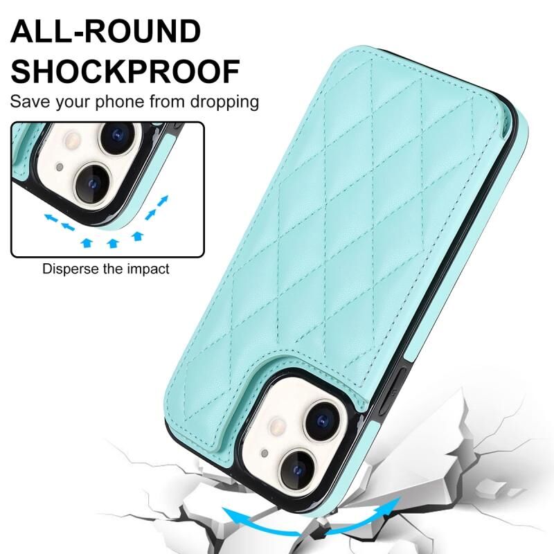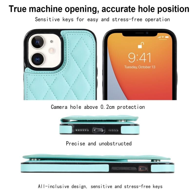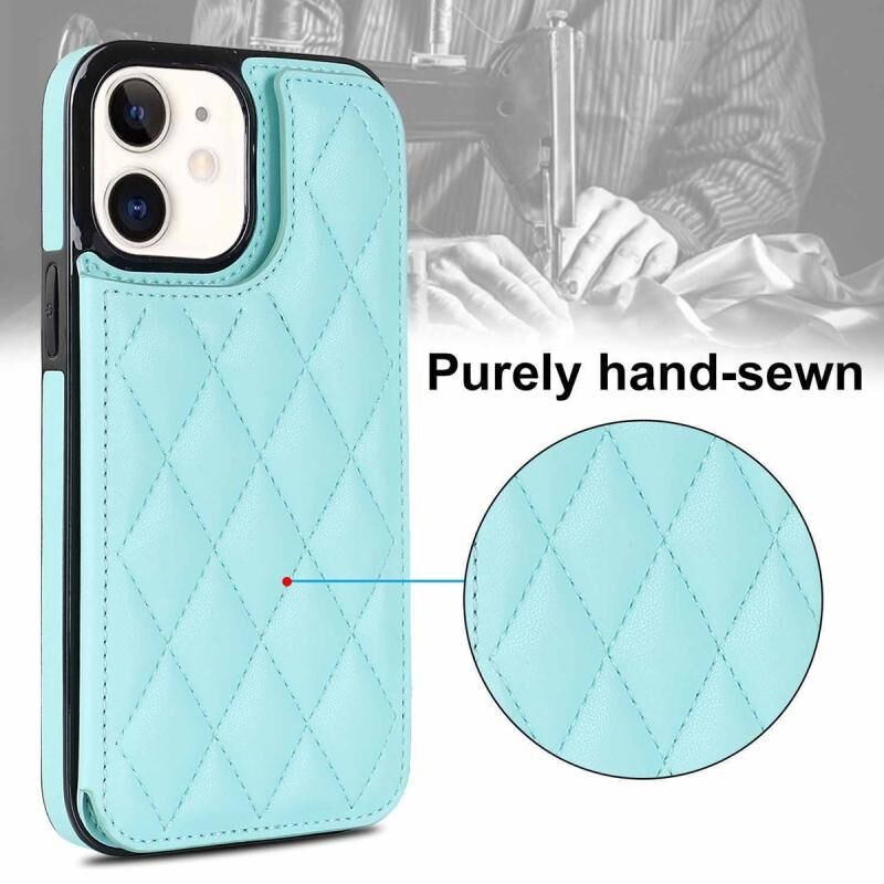 For iPhone 12 Double Buckle Rhombic PU Leather Phone Case(Blue)