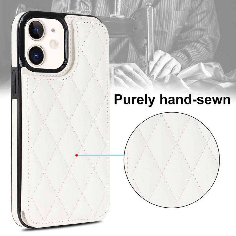 For iPhone 12 Double Buckle Rhombic PU Leather Phone Case(White)