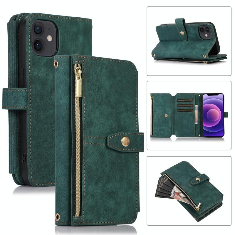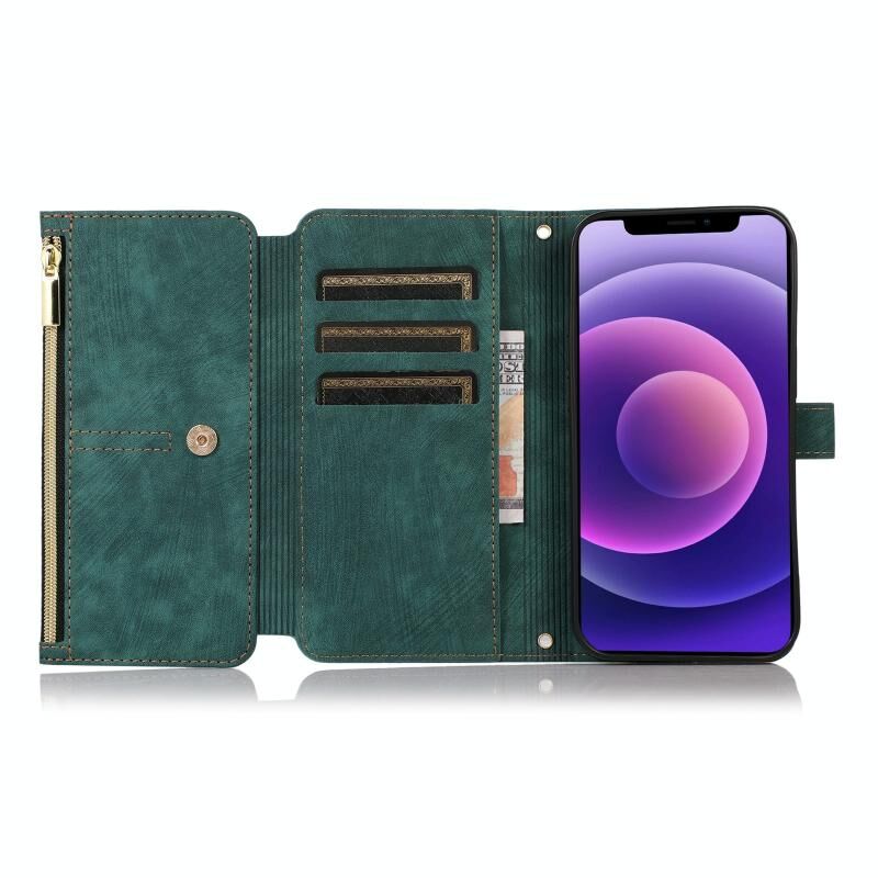 For iPhone 12 Dream 9-Card Wallet Zipper Bag Leather Phone Case(Green)