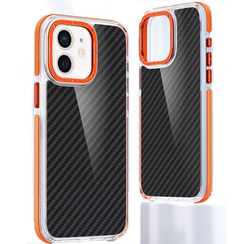 Θήκη τηλεφώνου για iPhone 12 Υβριδική από TPU, ακρυλικό και ανθρακονήματα διχρωμίας (Πορτοκαλί)