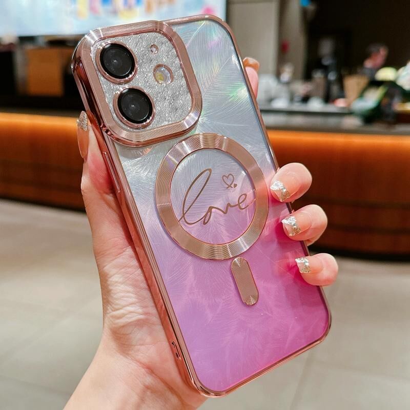 Θήκη τηλεφώνου TPU με μαγνητική σύνδεση Magsafe, διαφανές σχέδιο με φτερά και ιριδίζοντα χρώματα για iPhone 12 (Ροζ)