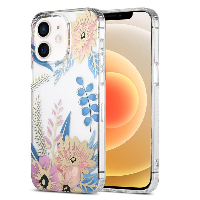 For iPhone 12 Dual-side Laminating IMD PC Hybrid TPU Phone Case(Lotus)