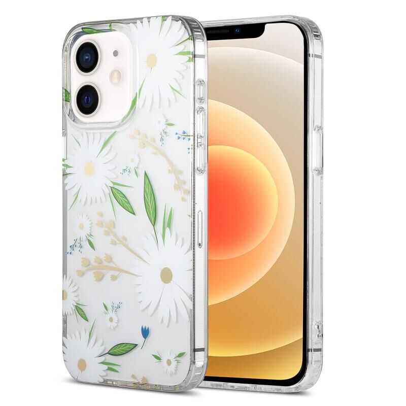 For iPhone 12 Dual-side Laminating IMD PC Hybrid TPU Phone Case(White Daisy)