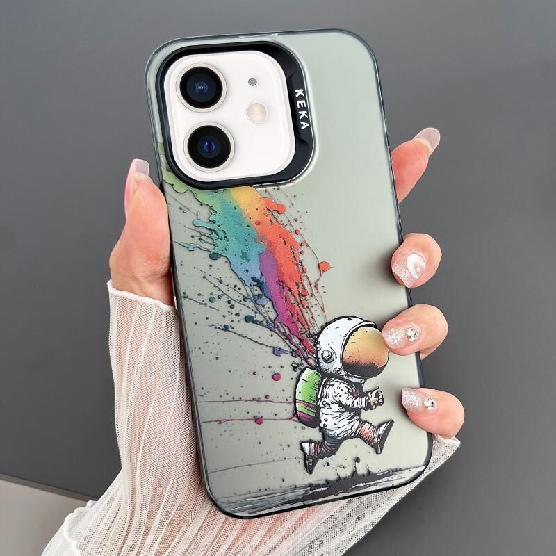 For iPhone 12 Dual-sided IMD Animal Graffiti TPU + PC Phone Case(Running Astronauts)