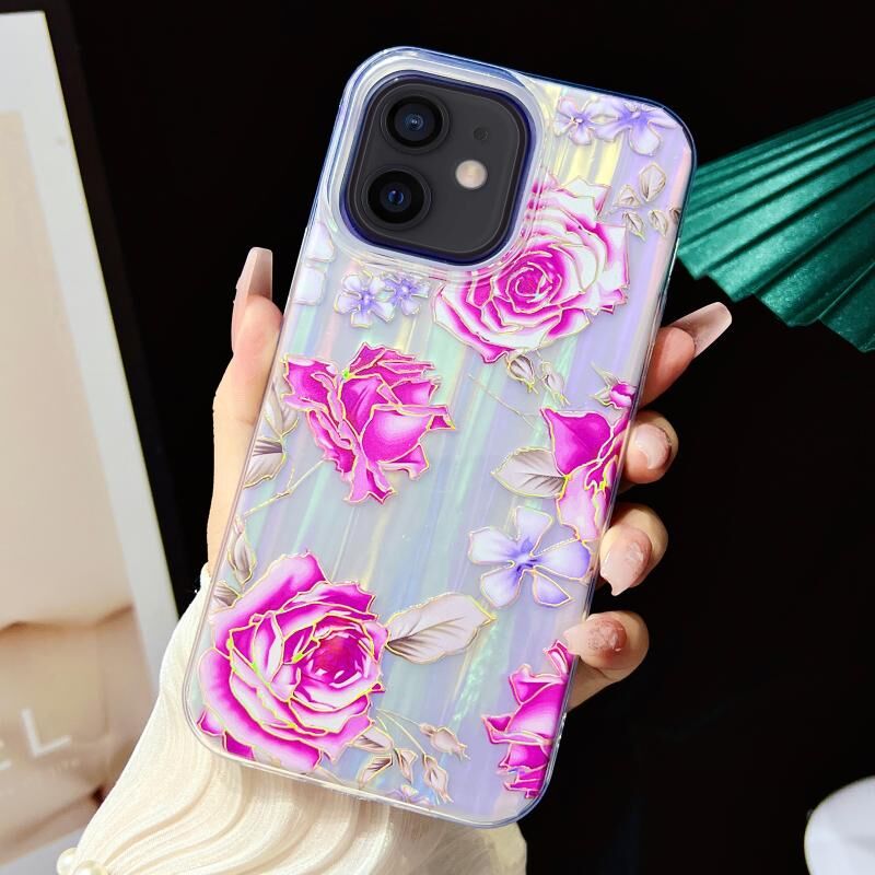 Θήκη τηλεφώνου για iPhone 12, Επιμεταλλευμένη Πολύχρωμη μεμβράνη TPU + PC (Κόκκινο Τριαντάφυλλο)