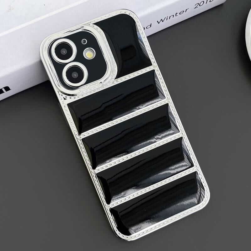 For iPhone 12 Electroplated Silver Edge Eiderdown TPU Phone Case(Black)
