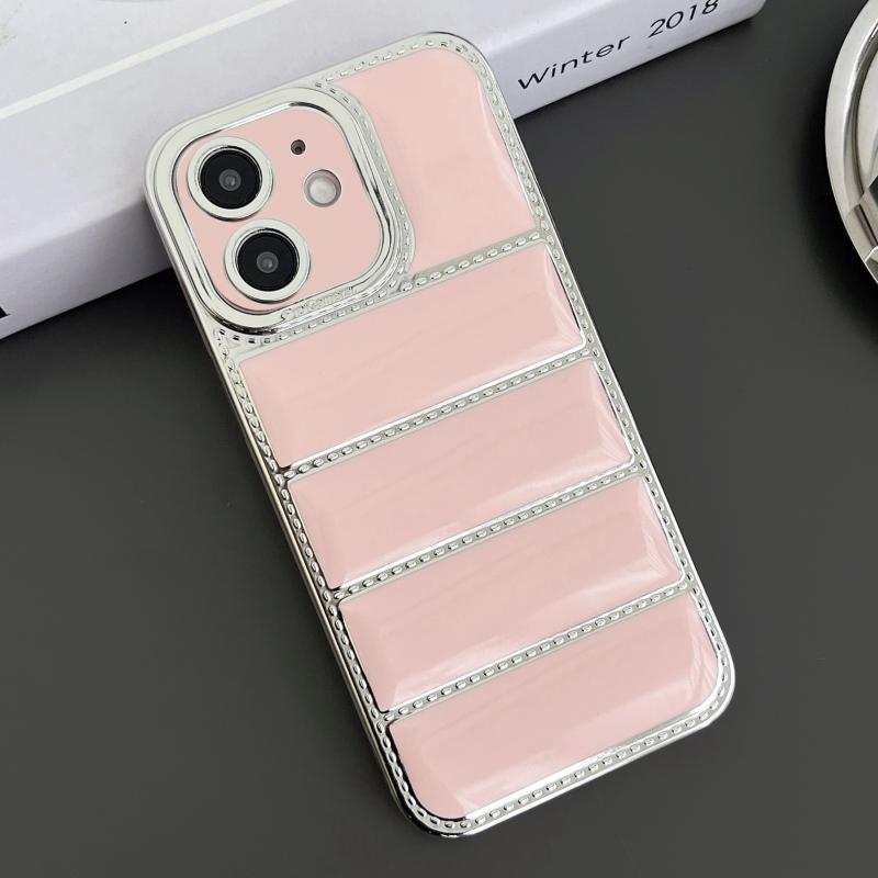 For iPhone 12 Electroplated Silver Edge Eiderdown TPU Phone Case(Pink)