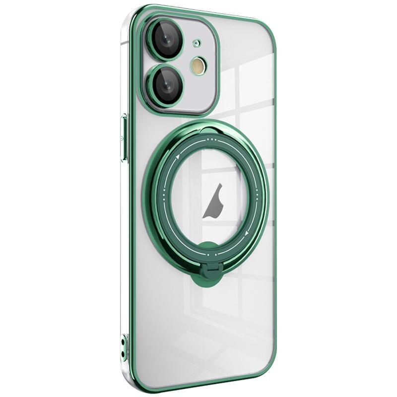 For iPhone 12 Electroplating MagSafe 360 Degree Rotation Holder Shockproof Phone Case(Dark Green)