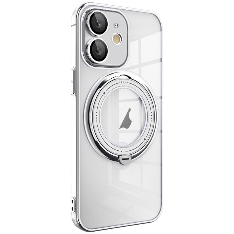 For iPhone 12 Electroplating MagSafe 360 Degree Rotation Holder Shockproof Phone Case(Silver)