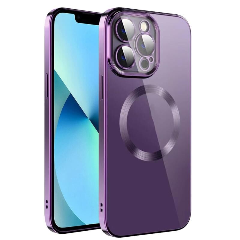 For iPhone 12 Electroplating MagSafe TPU Phone Case with Lens Film(Deep Purple)