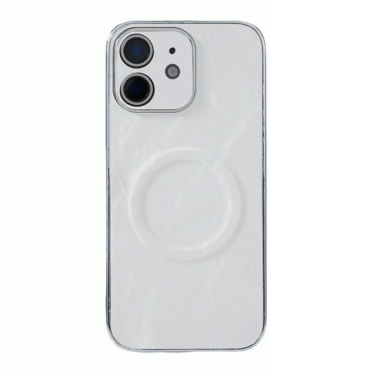 Θήκη iPhone 12 Electroplating PC Snow Bark Texture MagSafe (Λευκό)