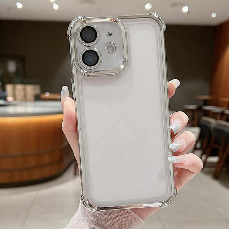 For iPhone 12 Electroplating Space TPU Four-corner Shockproof Phone Case with Lens Film(Silver)