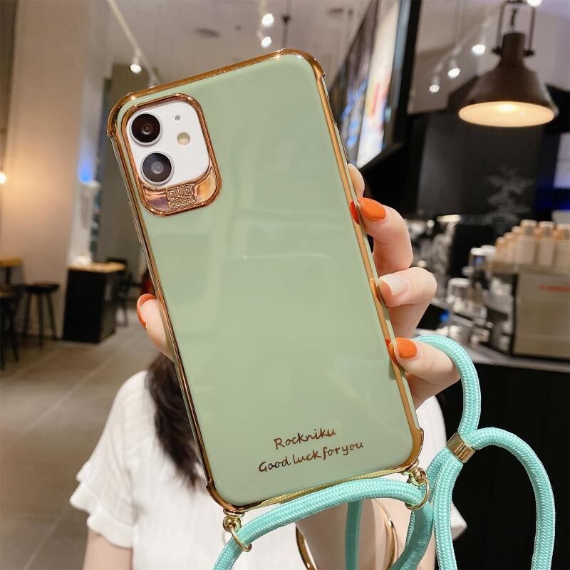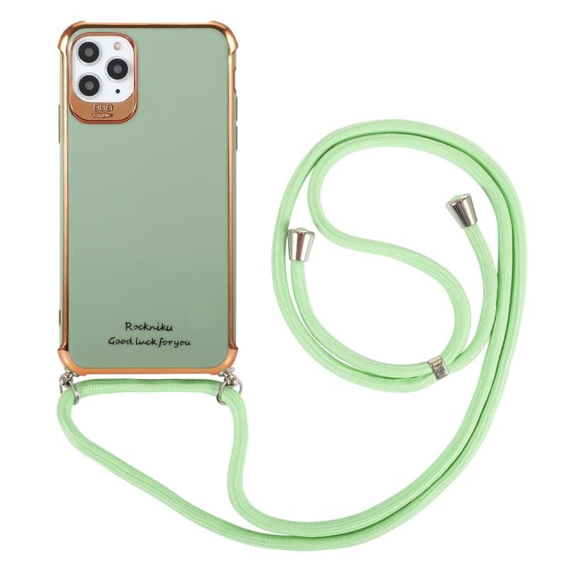 Θήκη προστασίας για iPhone 12, εύκαμπτη σιλικόνης TPU με ηλεκτρολυτική επίστρωση, αντικραδασμική, με ενίσχυση στις τέσσερις γωνίες και λουρί (βαθύ πράσινο).