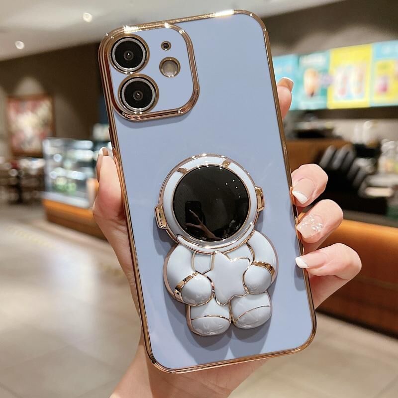 Θήκη τηλεφώνου για iPhone 12 με επιμετάλλωση, αστροναύτη και σχέδιο αστεριών (Ροζ)