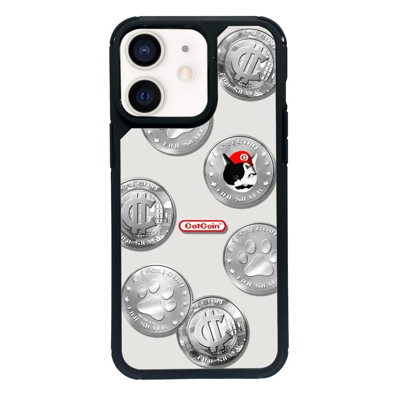 For iPhone 12 Exclusive Design Style PC Full Coverage Pattern Phone Case(Silver Coin Cat)