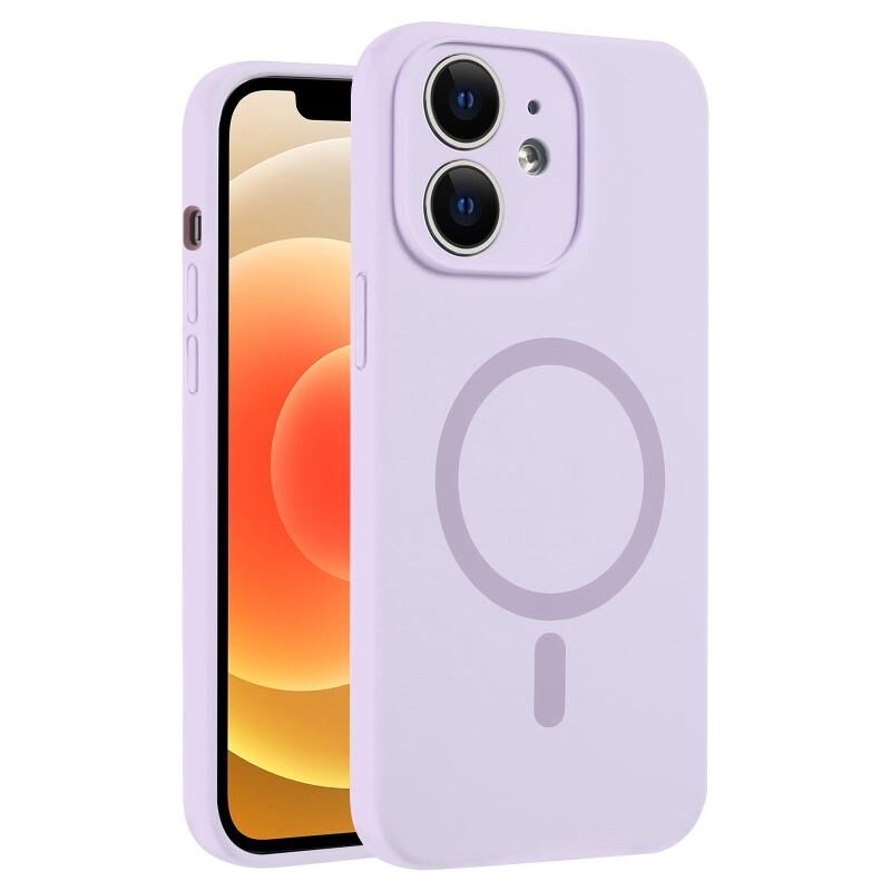 For iPhone 12 Fine Hole Pure Color Liquid Silicone MagSafe Phone Case(Lilac)