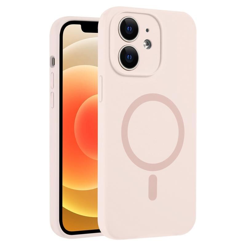 For iPhone 12 Fine Hole Pure Color Liquid Silicone MagSafe Phone Case(Pink)