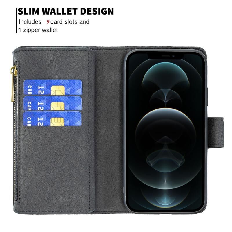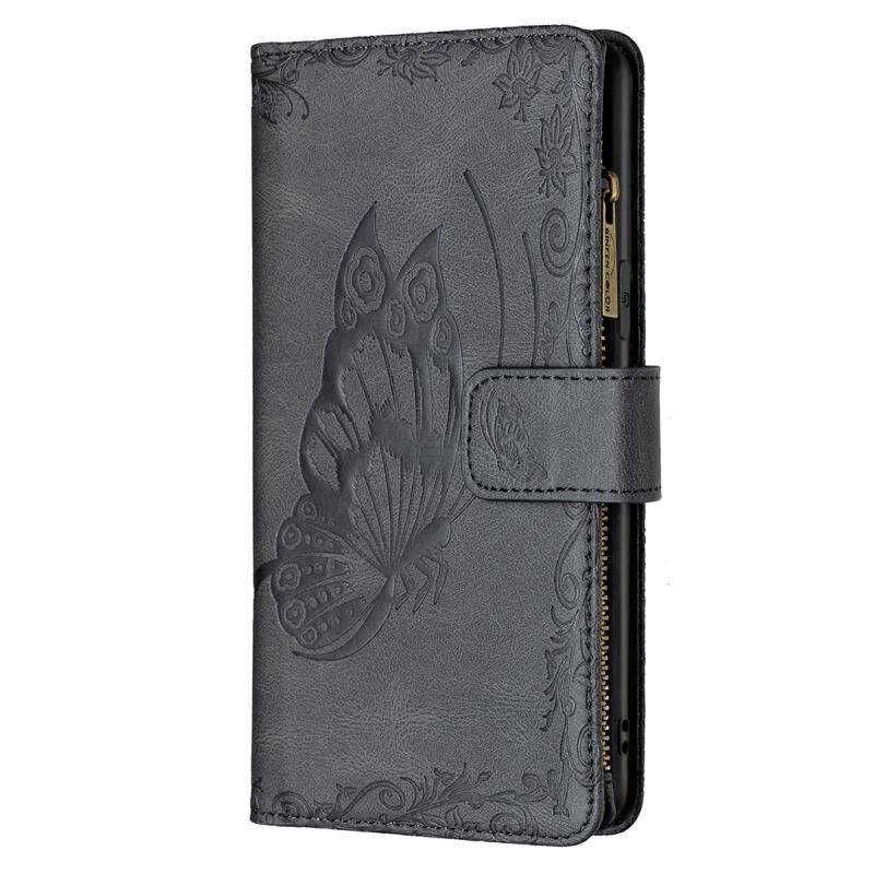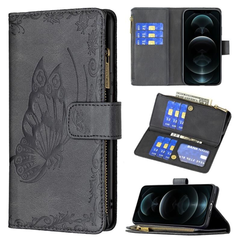 For iPhone 12 Flying Butterfly Embossing Pattern Zipper Horizontal Flip Leather Case with Holder & Card Slots & Wallet(Black)
