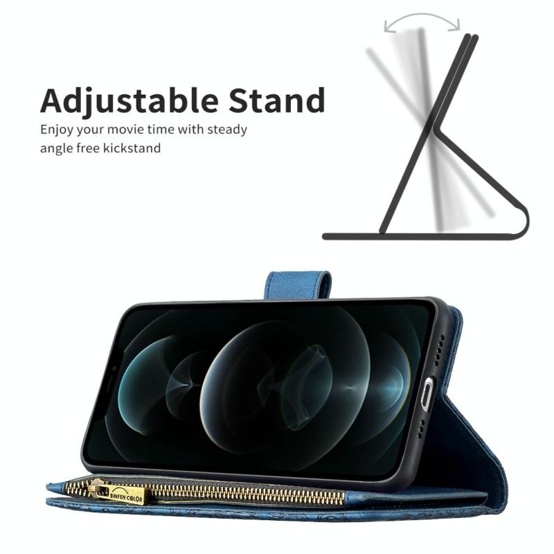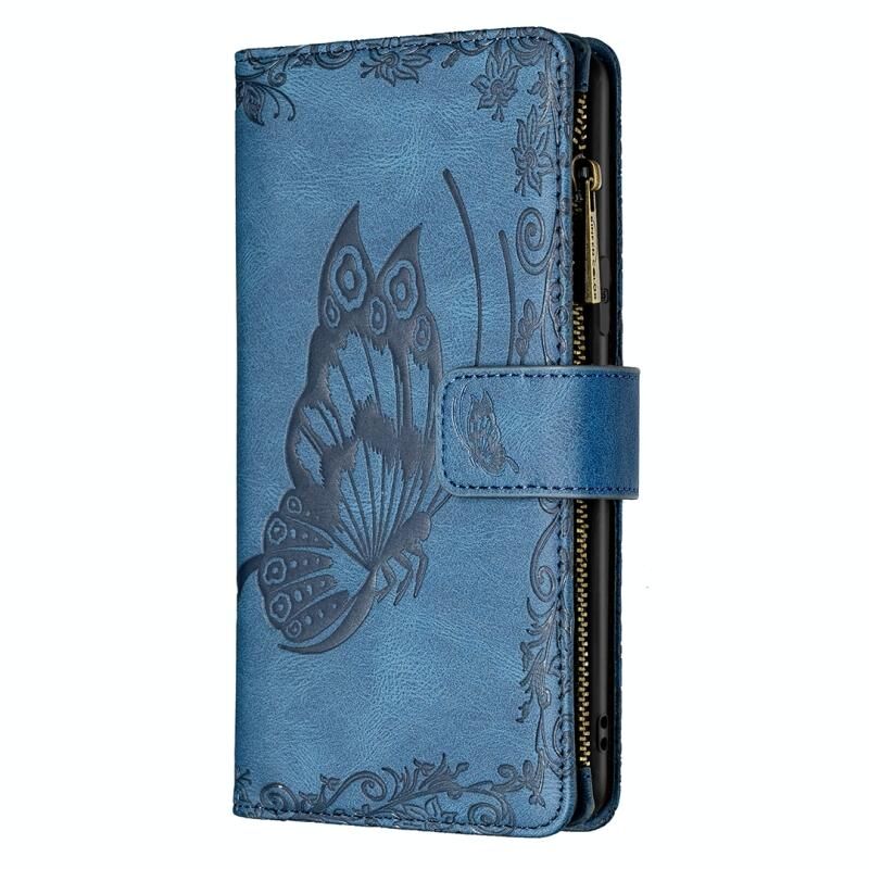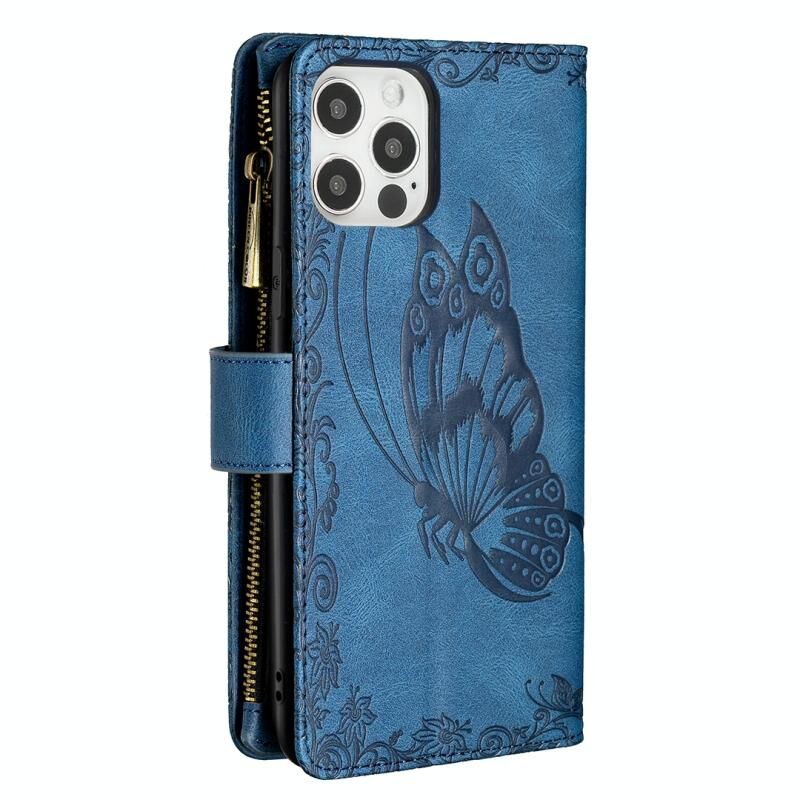 For iPhone 12 Flying Butterfly Embossing Pattern Zipper Horizontal Flip Leather Case with Holder & Card Slots & Wallet(Blue)